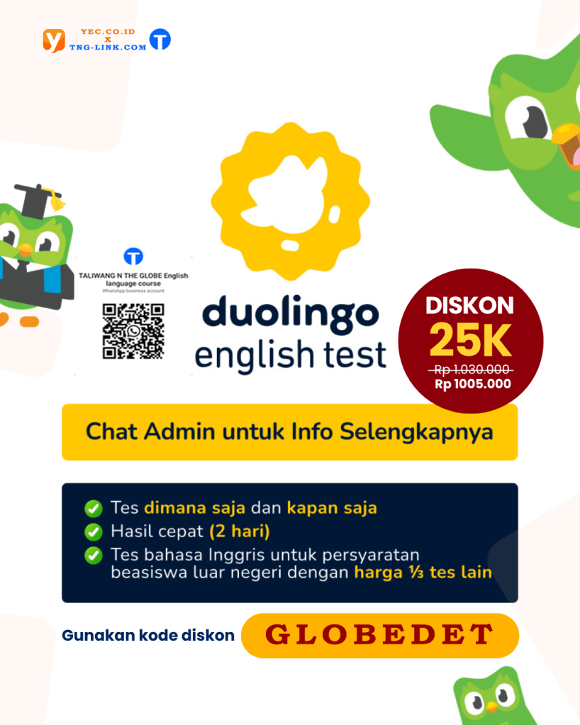 Kami menyediakan tes resmi yang bisa diambil online dari rumah. Sertifikat dikirim sesuai ketentuan penyelenggara. Gunakan kode kupon dari TALIWANG N THE GLOBE untuk mendapatkan diskon.