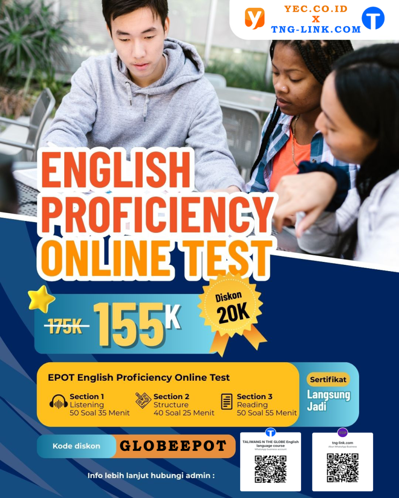 Biaya mengikuti kebijakan penyelenggara dan periode promo (contoh kisaran pada halaman YEC untuk iBT/ITP/EPOT). Kami kirimkan price list terbaru via WhatsApp. YEC Shop+2YEC Shop+2